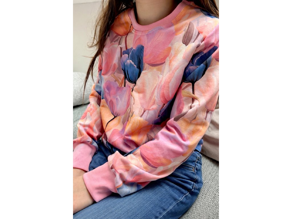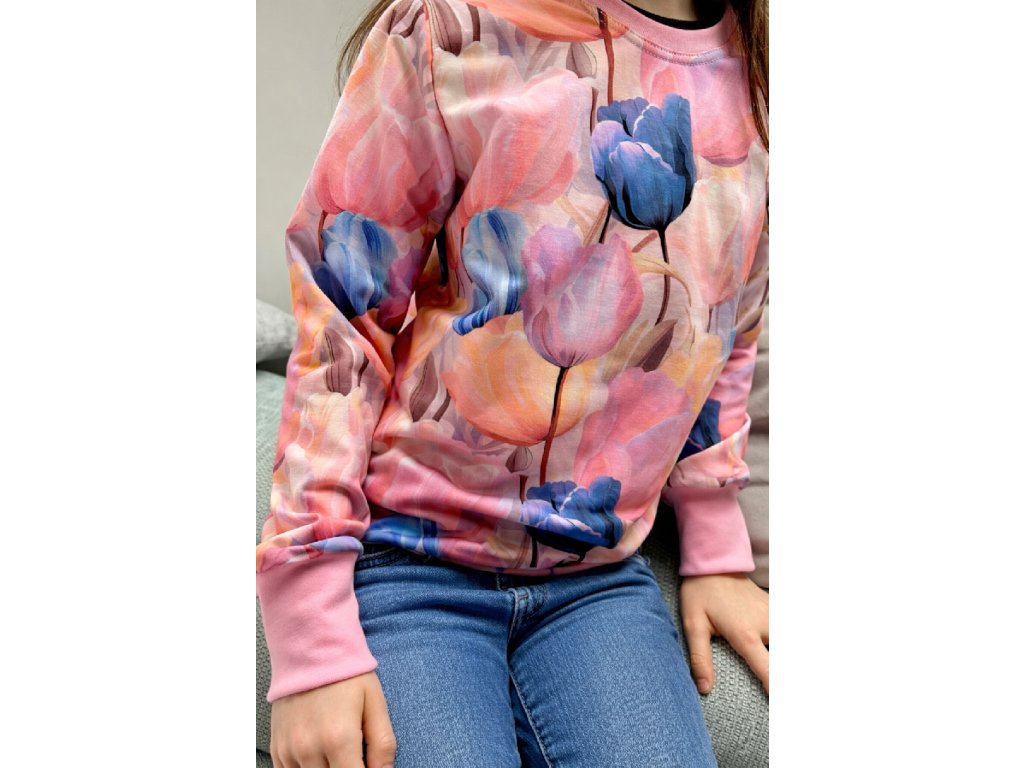 Mikina basic střihu do pasu. V pase ukončeno gumou.